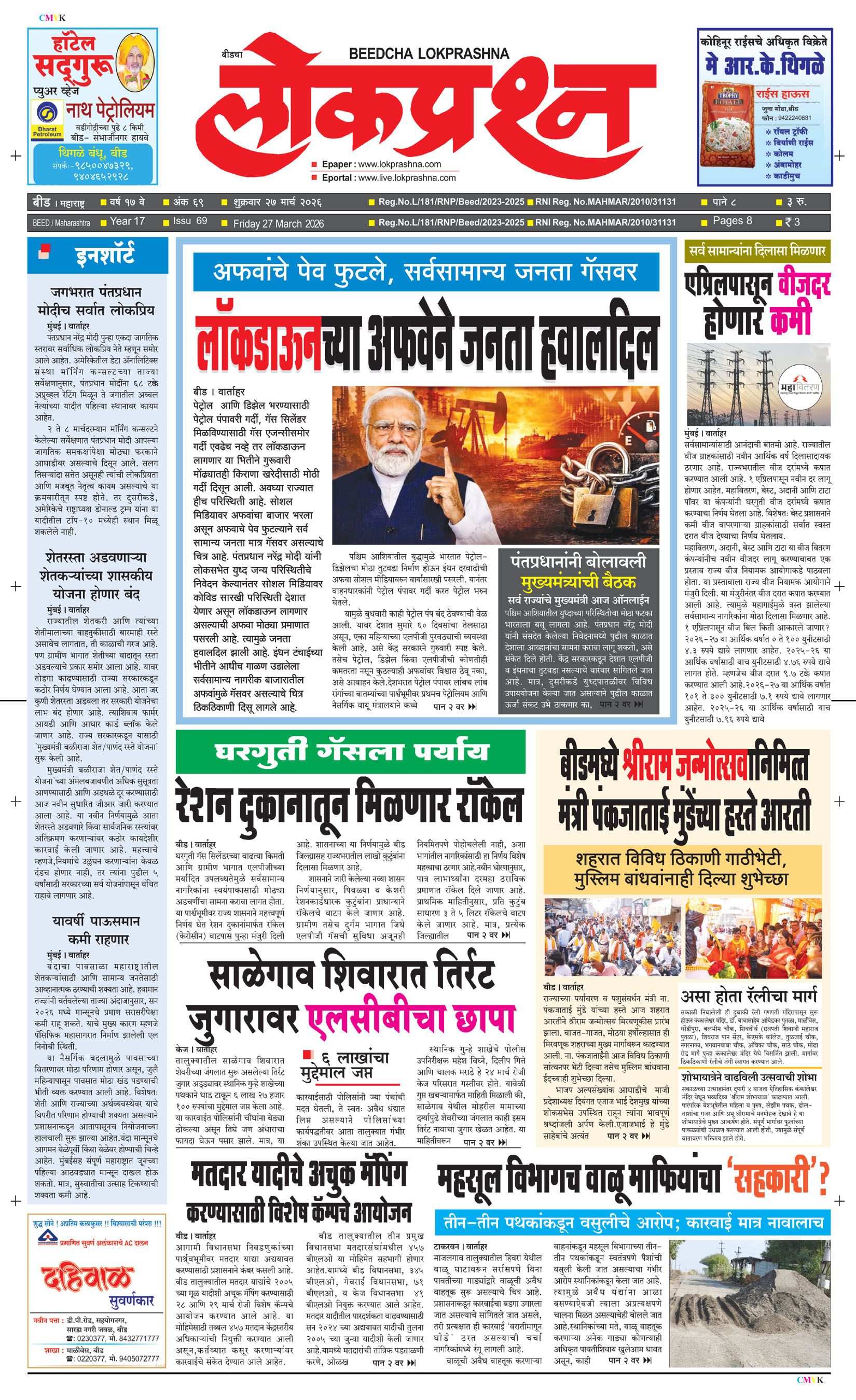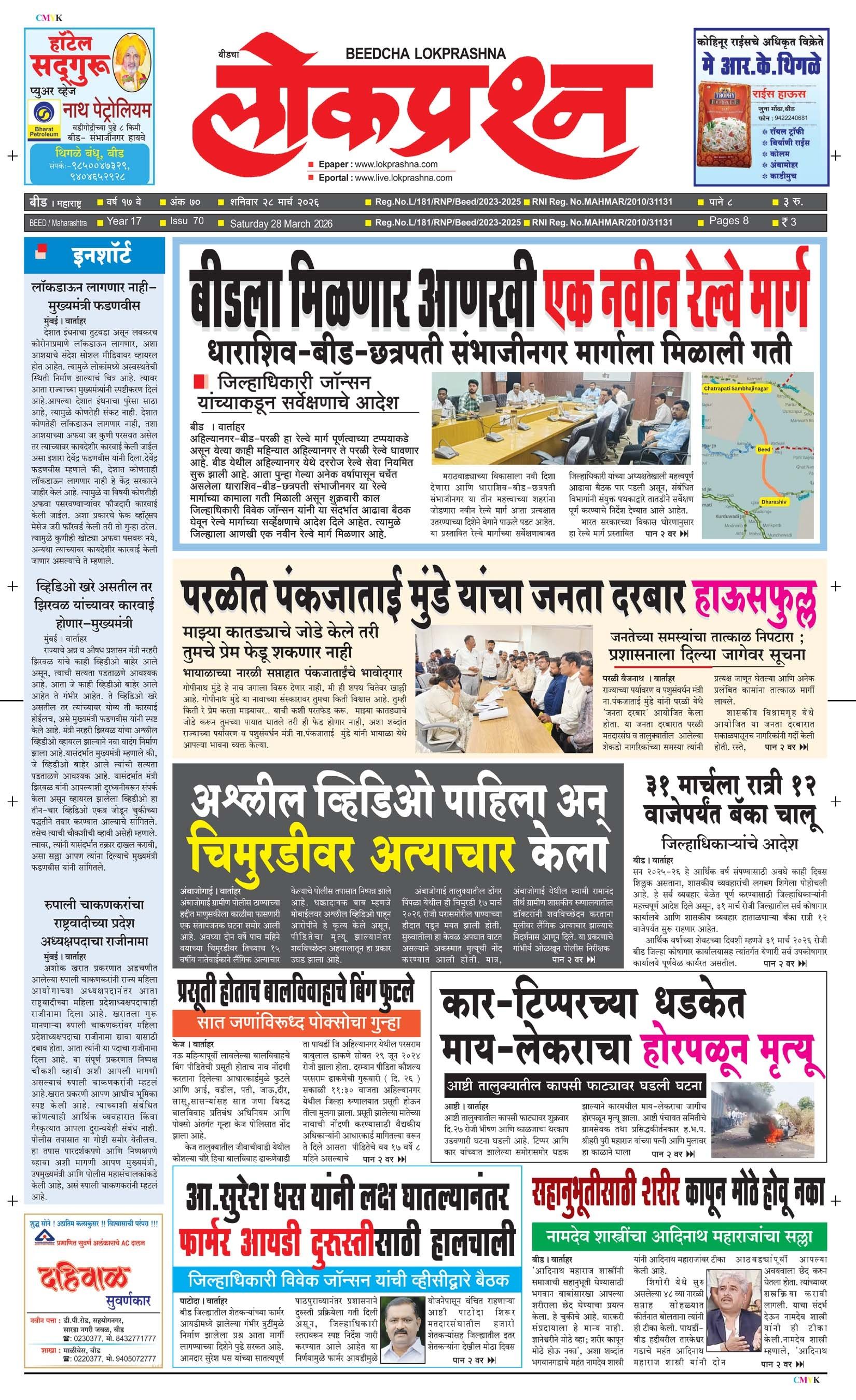 संपादक – दिलीप मधुकर खिस्ती, मो नं 9422242790, जाहिरात विभाग – 9595353531, dainiklokprashna@gmail.com, beedlokprashna@gmail.com, दै. बीडचा लोकप्रश्न, स्टेडियम कॉम्प्लेक्स सहयोगनगर, बीड जि. बीड – ४३११२२ पहिले पान दुसरे पान तिसरे पान चौथे पान पाचवे पान सहावे पान सातवे पान आठवे पान Visitor Counter free online counter Saturday, 28 March 2026