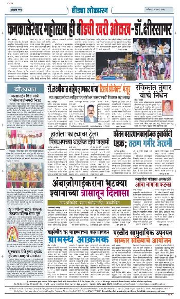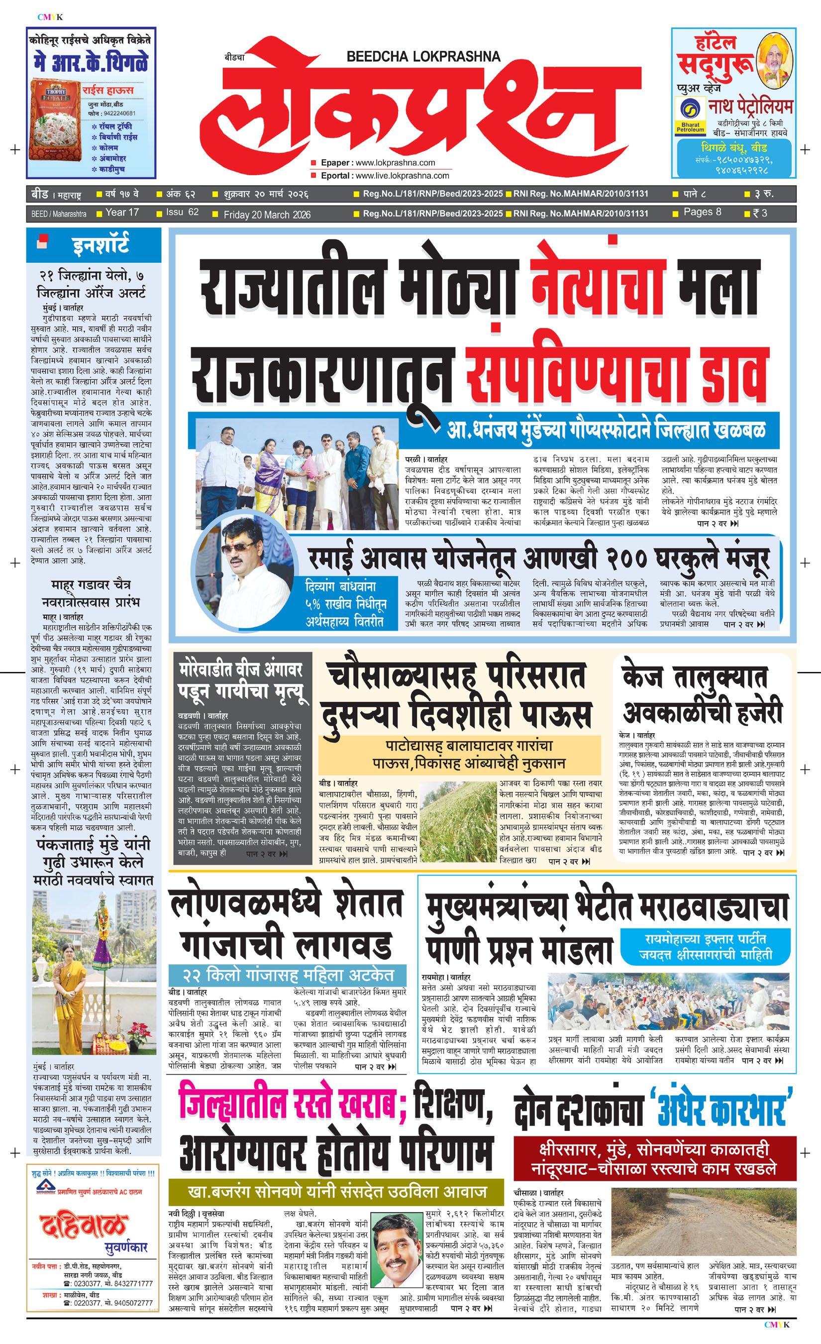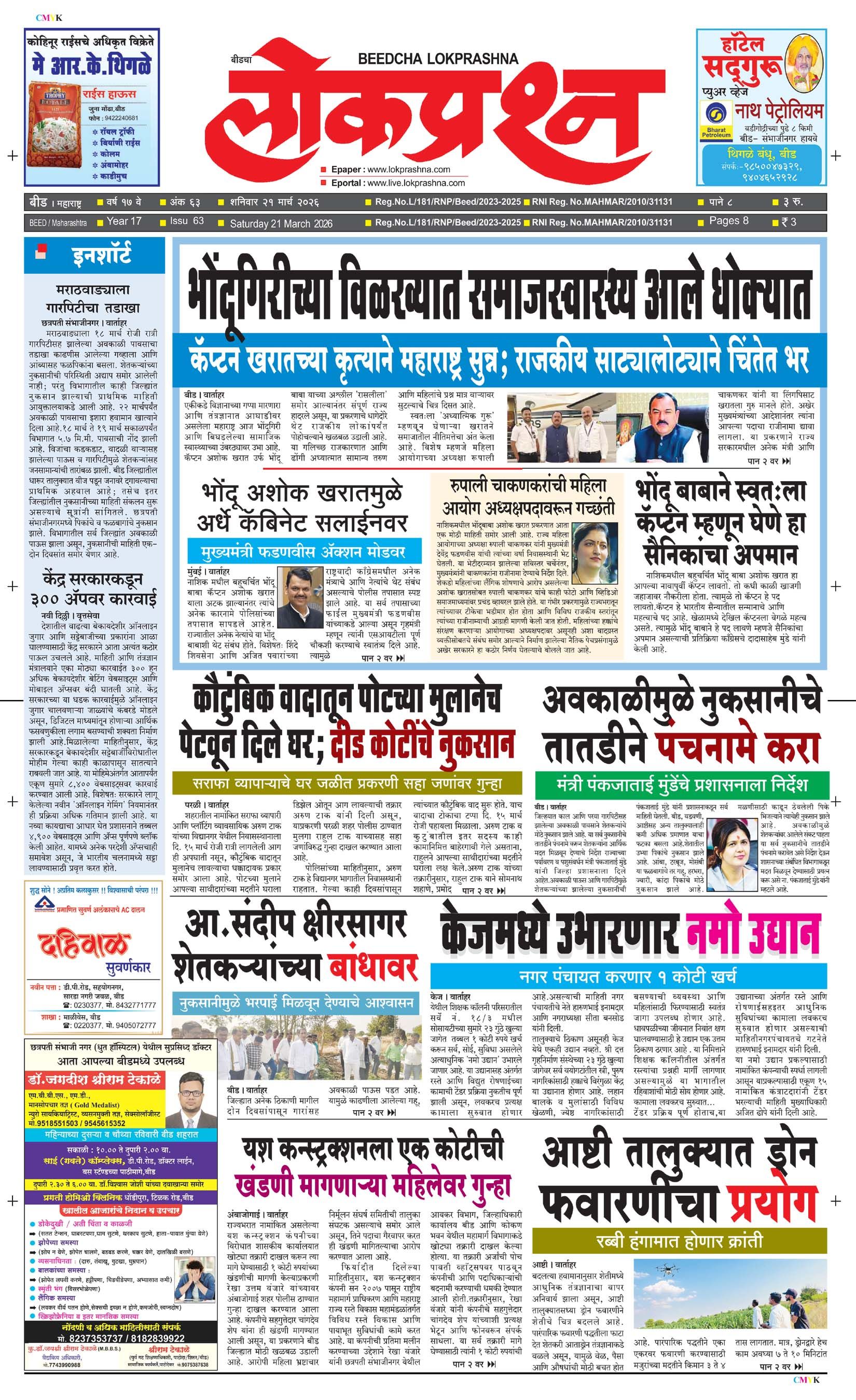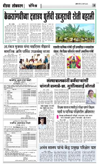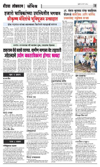 संपादक – दिलीप मधुकर खिस्ती, मो नं 9422242790, जाहिरात विभाग – 9595353531, dainiklokprashna@gmail.com, beedlokprashna@gmail.com, दै. बीडचा लोकप्रश्न, स्टेडियम कॉम्प्लेक्स सहयोगनगर, बीड जि. बीड – ४३११२२ पहिले पान दुसरे पान तिसरे पान चौथे पान पाचवे पान सहावे पान सातवे पान आठवे पान Visitor Counter free online counter Friday, 20 March 2026
