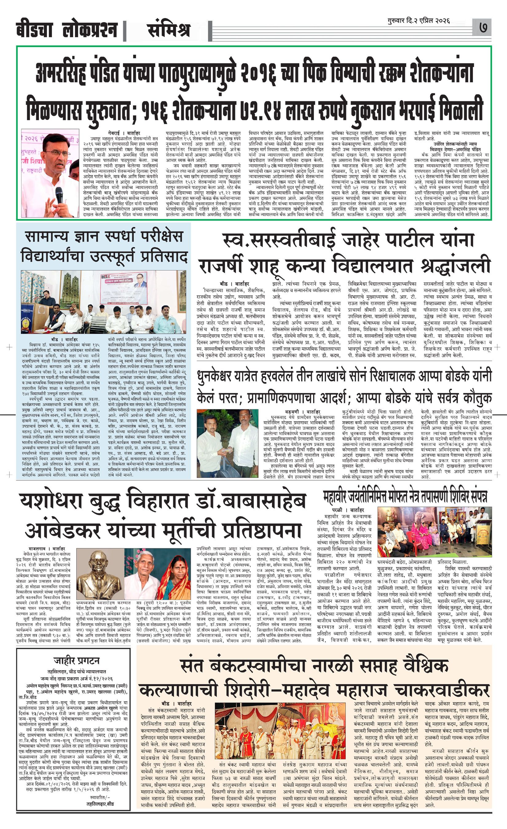 संपादक – दिलीप मधुकर खिस्ती, मो नं 9422242790, जाहिरात विभाग – 9595353531, dainiklokprashna@gmail.com, beedlokprashna@gmail.com, दै. बीडचा लोकप्रश्न, स्टेडियम कॉम्प्लेक्स सहयोगनगर, बीड जि. बीड – ४३११२२ << First << 1 >> Last >> पहिले पान दुसरे पान तिसरे पान चौथे पान पाचवे पान सहावे पान सातवे पान आठवे पान Visitor Counter free online counter