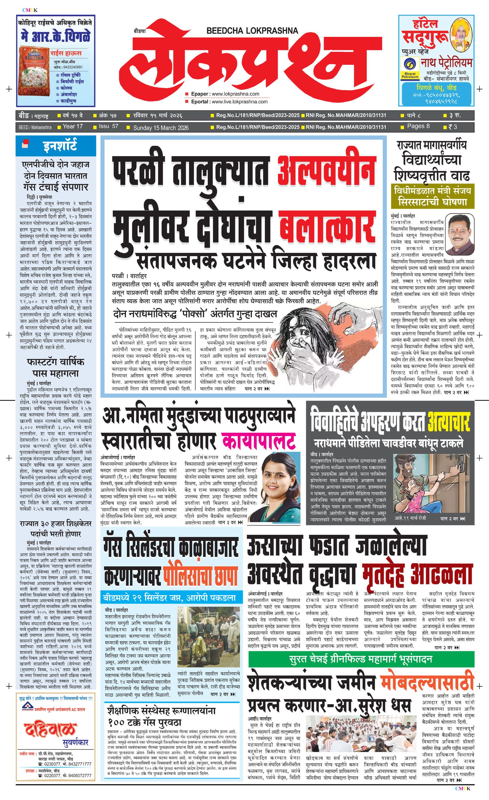 संपादक – दिलीप मधुकर खिस्ती, मो नं 9422242790, जाहिरात विभाग – 9595353531, dainiklokprashna@gmail.com, beedlokprashna@gmail.com, दै. बीडचा लोकप्रश्न, स्टेडियम कॉम्प्लेक्स सहयोगनगर, बीड जि. बीड – ४३११२२ पहिले पान दुसरे पान तिसरे पान चौथे पान पाचवे पान सहावे पान सातवे पान आठवे पान Visitor Counter free online counter Saturday, 14 March 2026