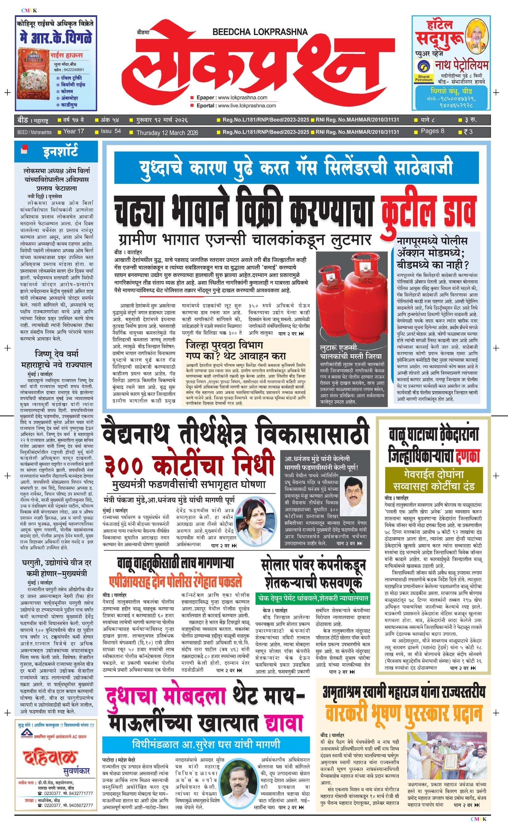 संपादक – दिलीप मधुकर खिस्ती, मो नं 9422242790, जाहिरात विभाग – 9595353531, dainiklokprashna@gmail.com, beedlokprashna@gmail.com, दै. बीडचा लोकप्रश्न, स्टेडियम कॉम्प्लेक्स सहयोगनगर, बीड जि. बीड – ४३११२२ पहिले पान दुसरे पान तिसरे पान चौथे पान पाचवे पान सहावे पान सातवे पान आठवे पान Visitor Counter free online counter Tuesday, 10 March 2026